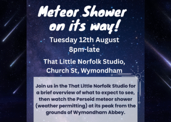 Join us in our warm, welcoming Studio on the evening of the Perseid meteor shower for a talk about what to expect before watching the shower in the grounds of Wymondham Abbey.