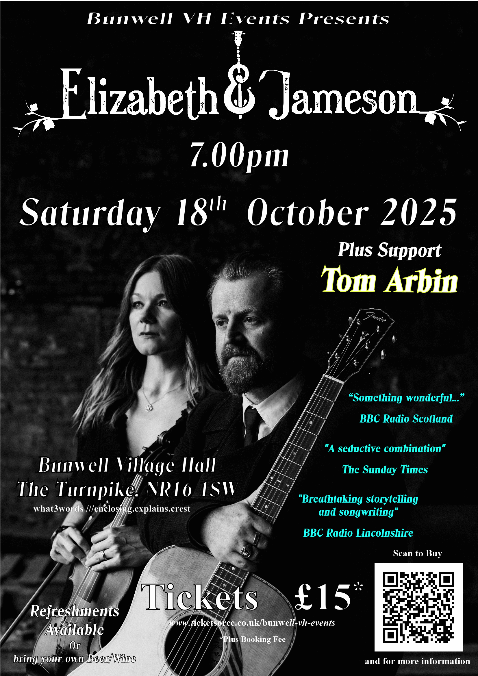 Tickets are £15 (plus booking fee) from; www.ticketsource.co.uk/bunwell-vh-events