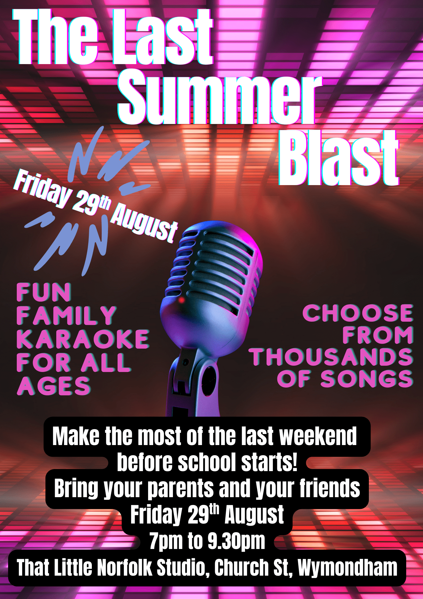Sing your hearts out in our homely Studio. We’ll have burgers and hotdogs, ice cream milkshakes and cakes. It’s all out fun and indulgence to end the summer holidays.