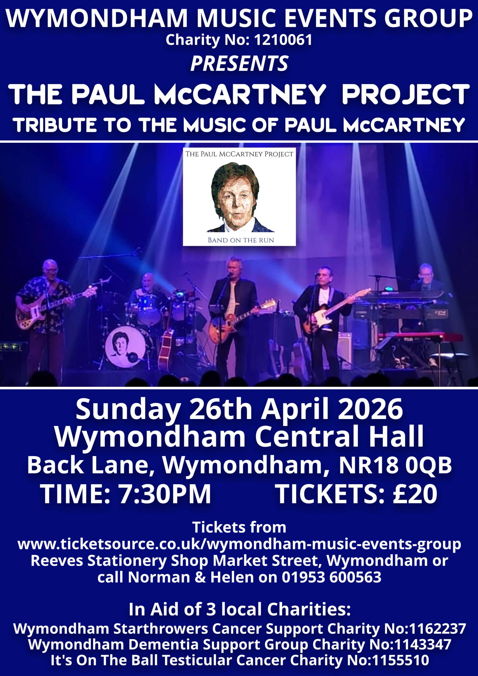 Enjoy a great evening of entertainment while supporting Wymondham Music Events Group in raising funds for 3 local charities.