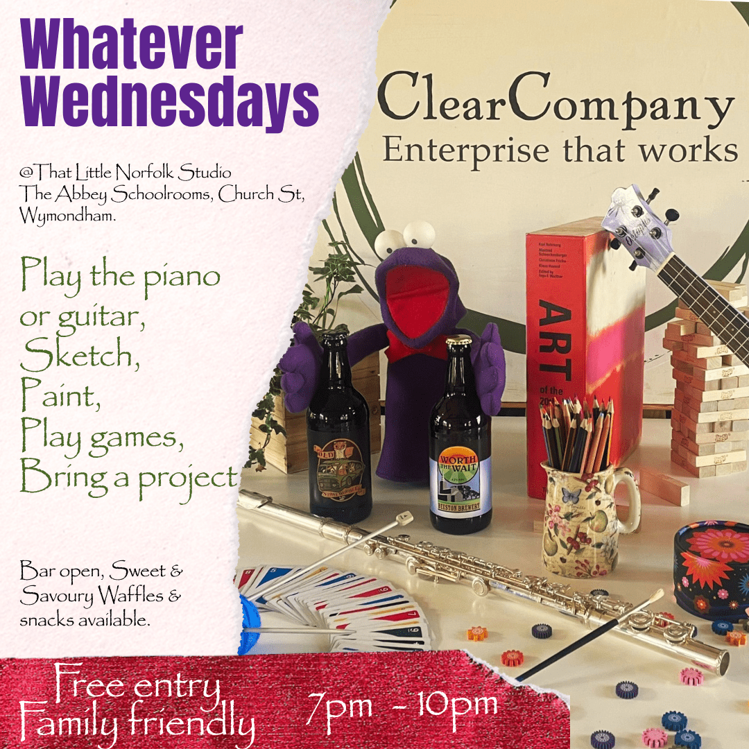 Whatever goes on Wednesdays! Drop in to our Studio on the fringes of Wymondham Abbey and enjoy whatever you fancy doing!