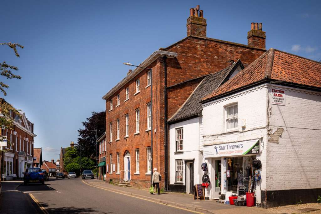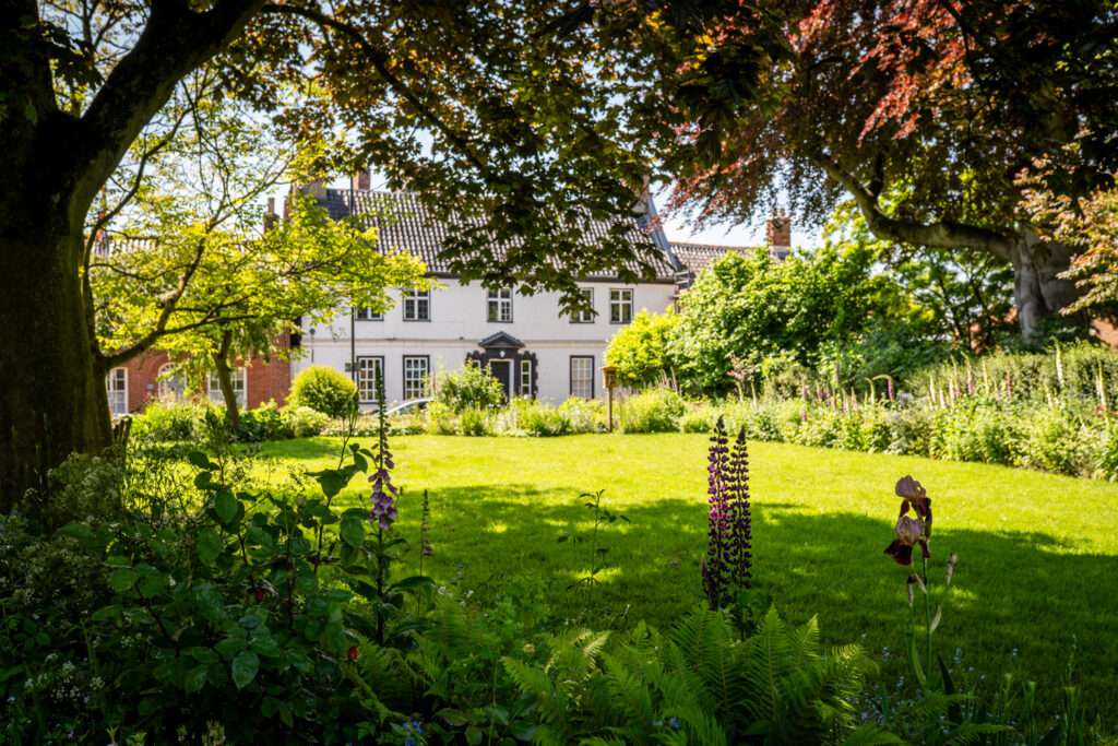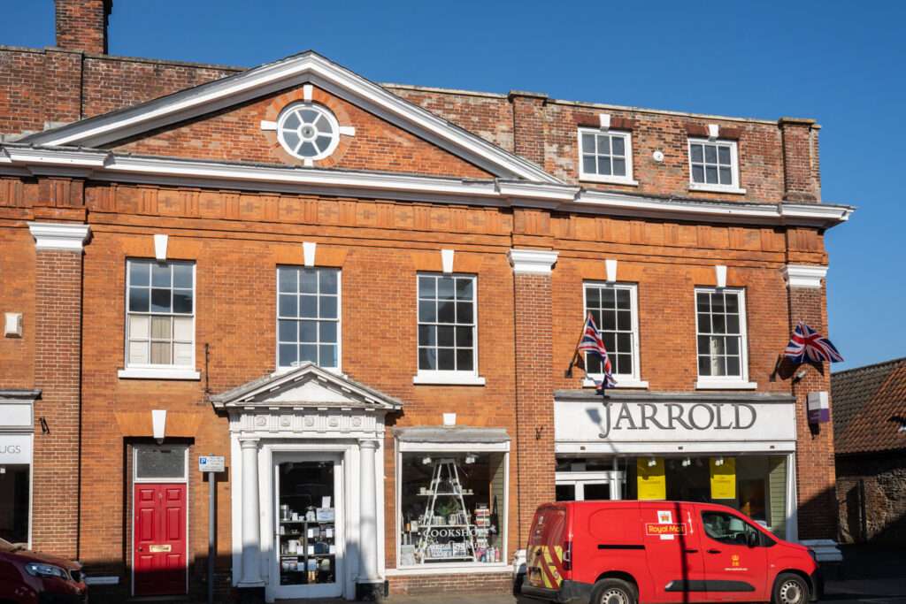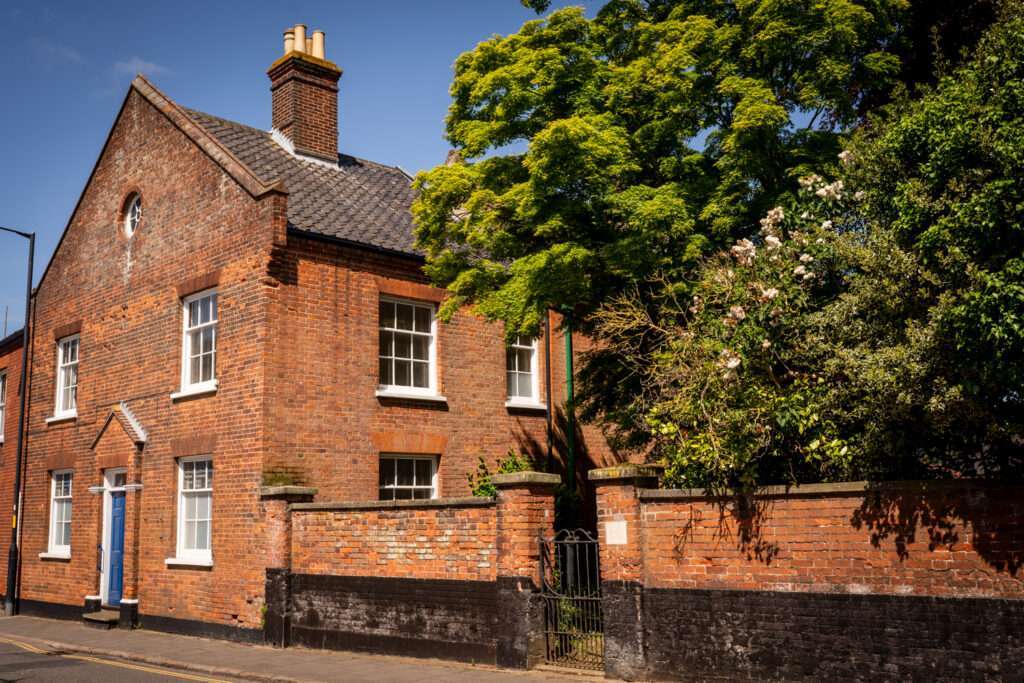 This street is mainly Georgian in character. Houses of the mid-18th century, such as Beech House, Caius House and No 14 help give the street a grand atmosphere in terms of scale and quality. Also with an 18th century facade is Priory House. The fleur-de-lys crest over its door indicates that the house was used by the Grammar School until it closed in 1903. On the opposite side of the road are the Priory Gardens. Sharing this site is the former Post Office, a brick building dated 1939. Next to No 14 is one of the very few surviving single-bay timber-framed houses which makes a fine contrast in scale with the rest of the buildings in the street.