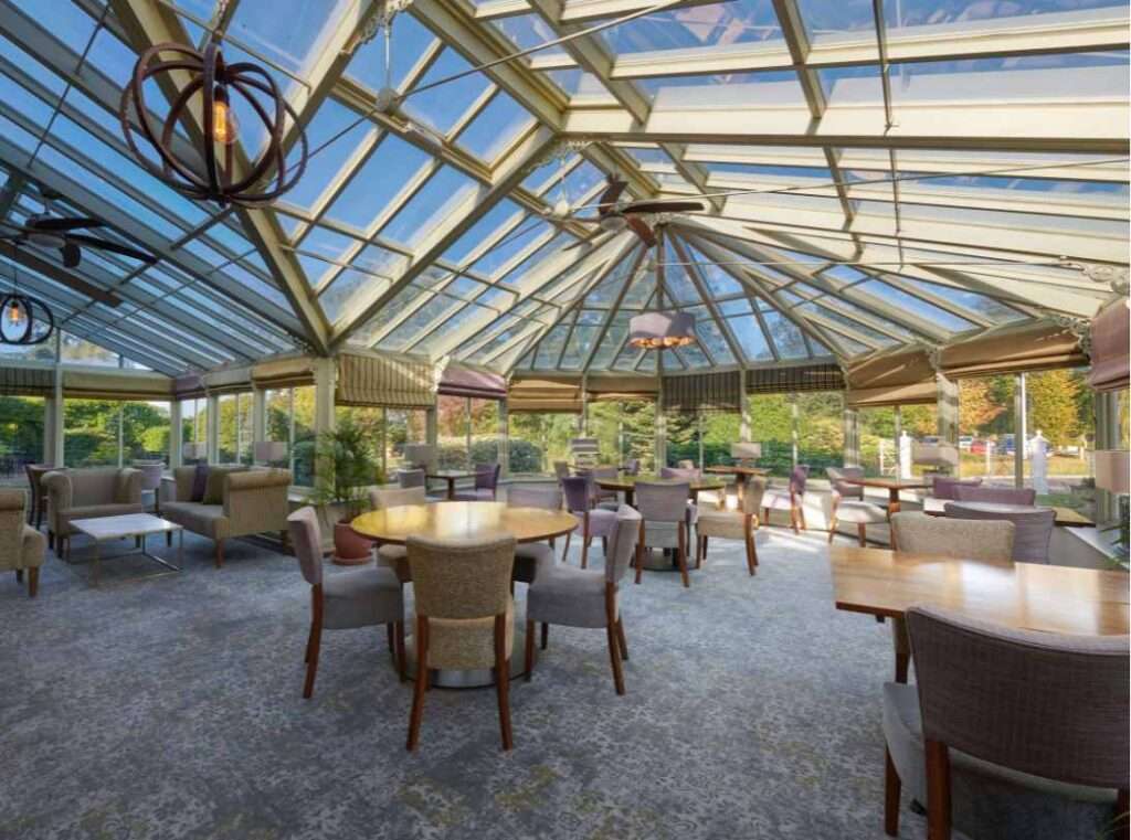 Guests can enjoy breakfast and dinner at Seasons Restaurant, while traditional Afternoon Tea is served in the elegant Drawing Room. Helene’s Lounge Bar offers light snacks throughout the day. The hotel’s spa and leisure facilities include a sauna, steam room, jacuzzi, gym, and a luxurious swimming pool.