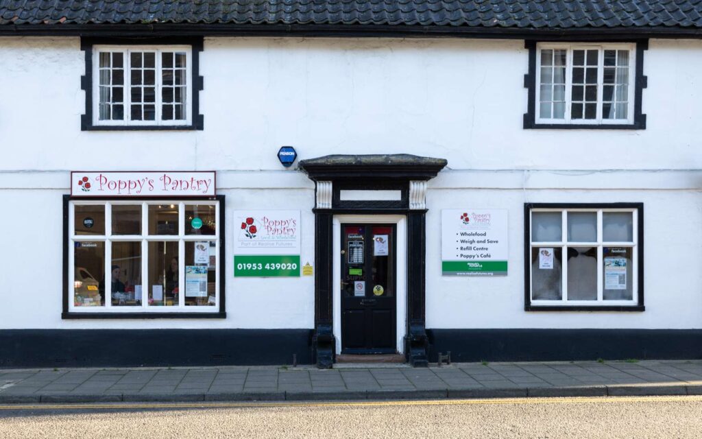 Poppy’s Pantry Norfolk is a Realise Futures Social Business in the town centre. Operating as a wholefoods shop, re-fill centre, weigh & save and café, it is more than just a shop!