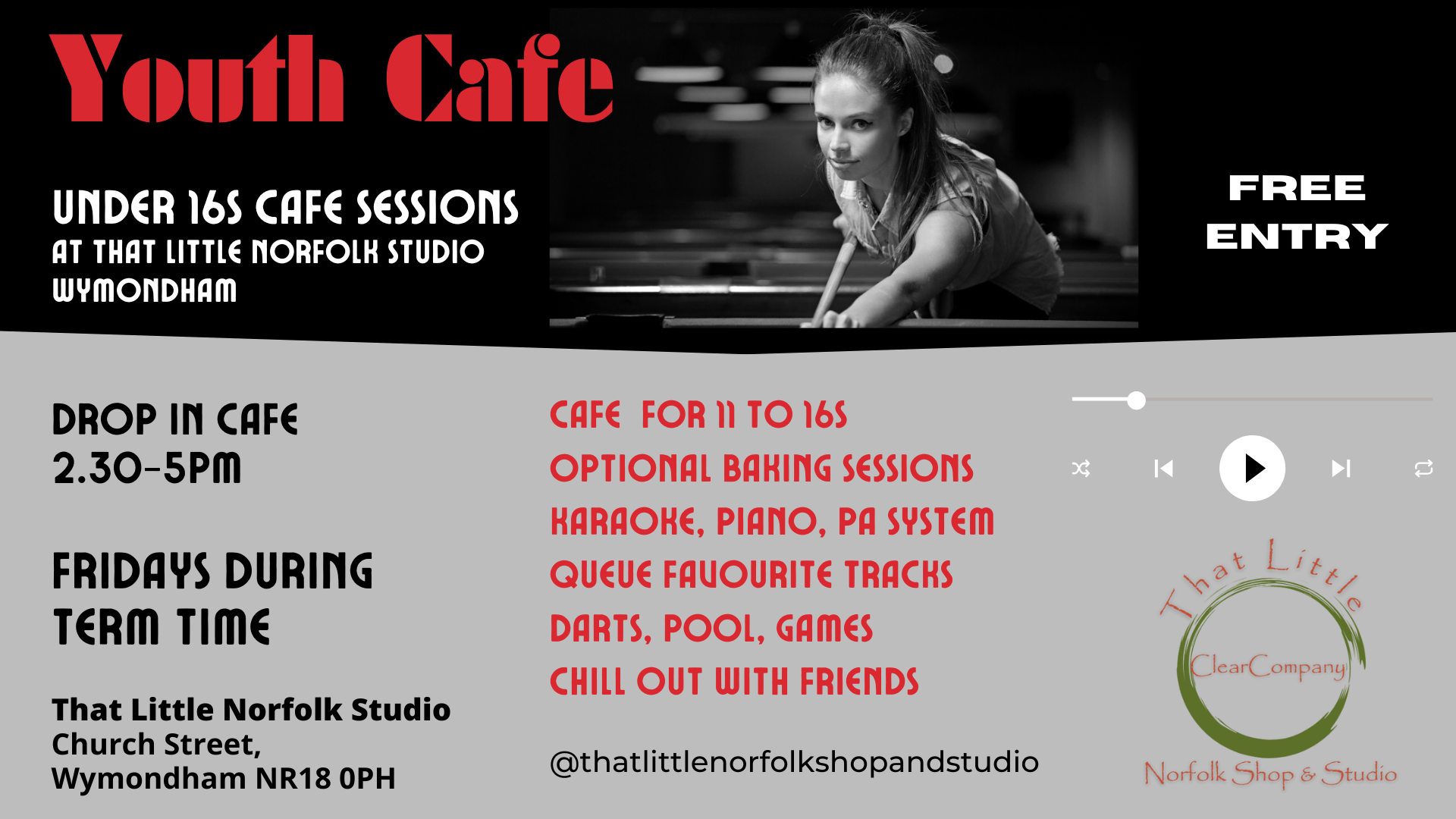 Free entry to our weekly Youth Cafe between 2.30pm and 5pm.